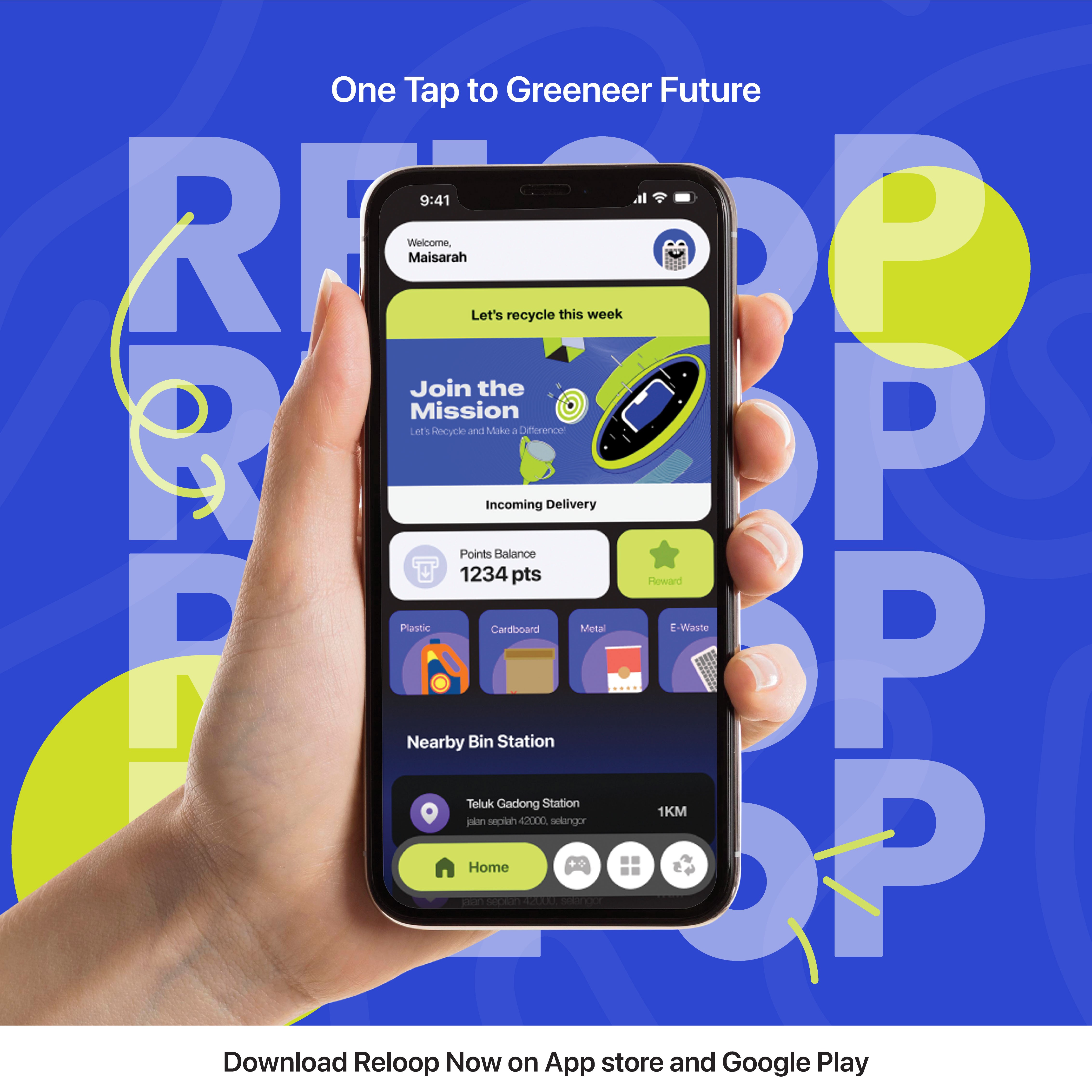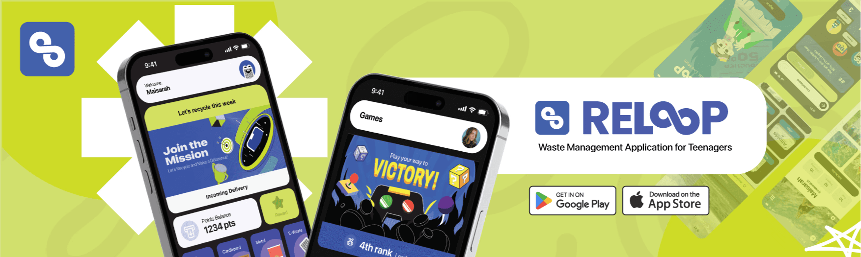 Reloop is a mobile application designed to make recycling easier and more engaging for teenagers by providing a user-friendly platform that promotes sustainable habits. Developed as part of a Final Year Project, the app features educational content, a scan-and-sort tool to identify recyclable items, a recycling tracker to monitor progress, gamified rewards to motivate continued use, and map integration to locate nearby recycling centers. Reloop aims to empower the younger generation to take part in environmental responsibility through a fun, accessible, and informative digital experience.
